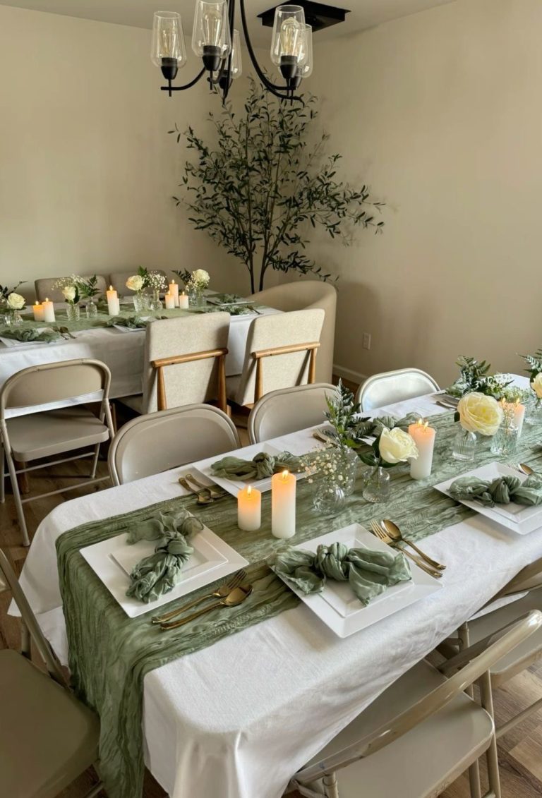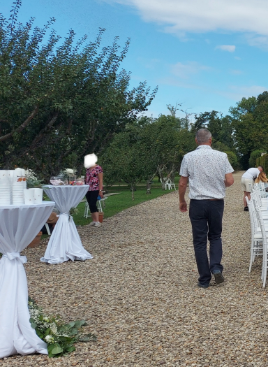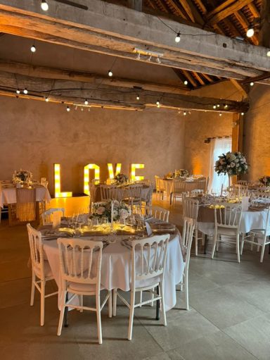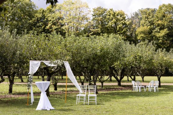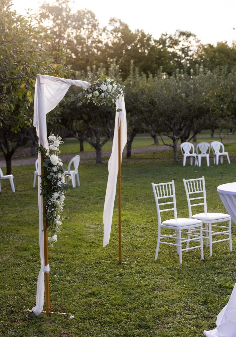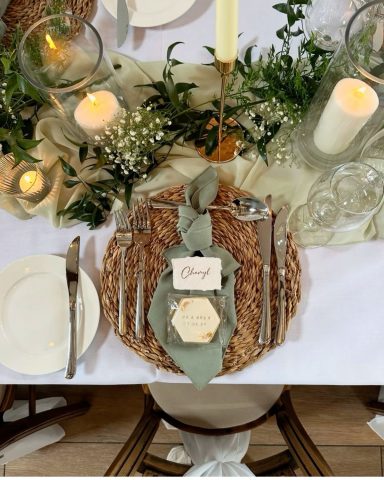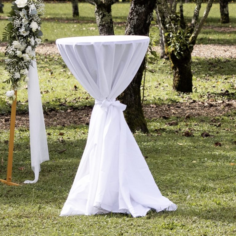 Fournis avec nappes (et noeuds si besoin), possibilité de demander des noeuds en lierre à votre fleuriste pour une touche encore plus élégante