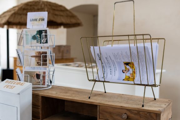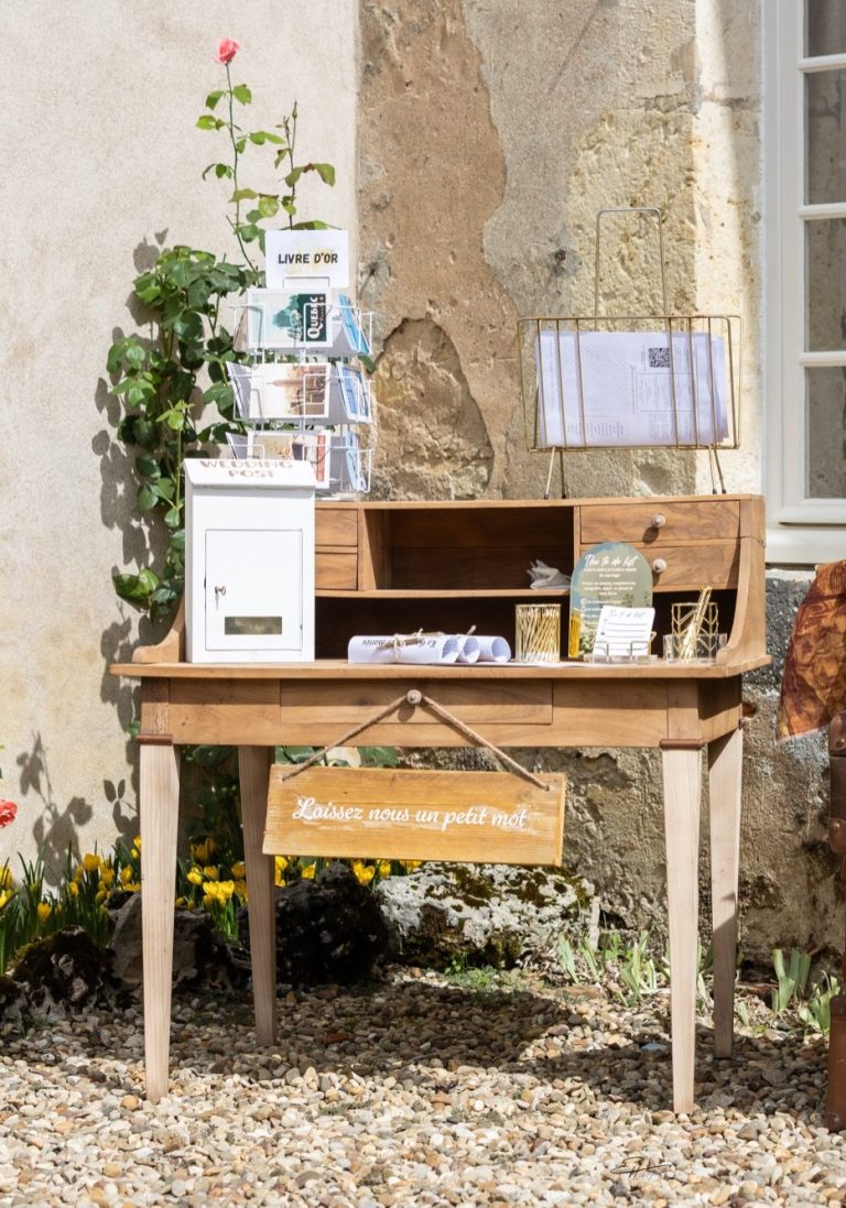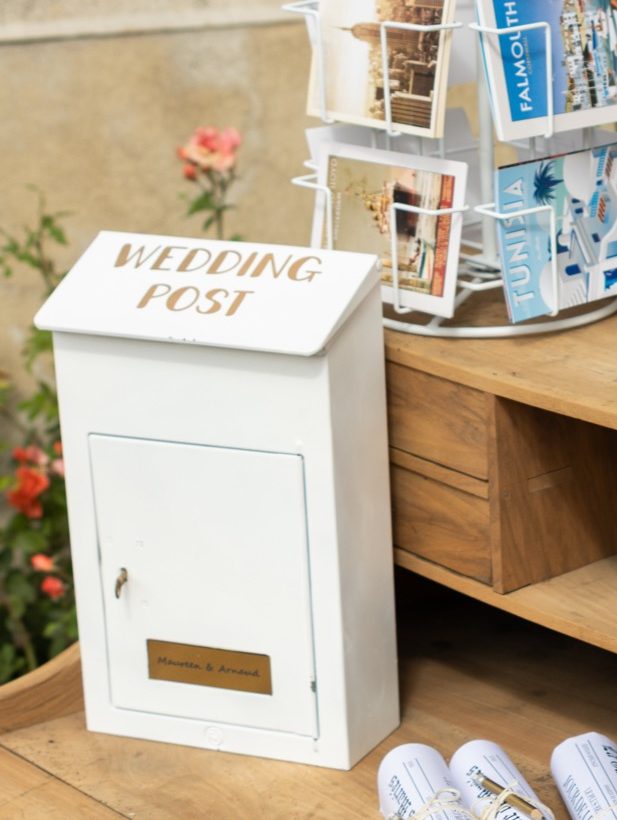 Peut être fourni avec d'autres éléments (boîte aux lettres, meuble vintage, signalétique "livre d'or")...