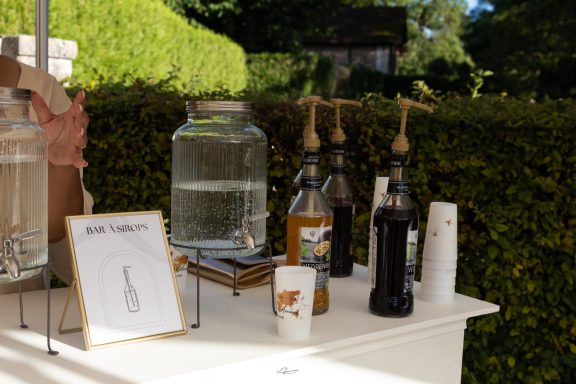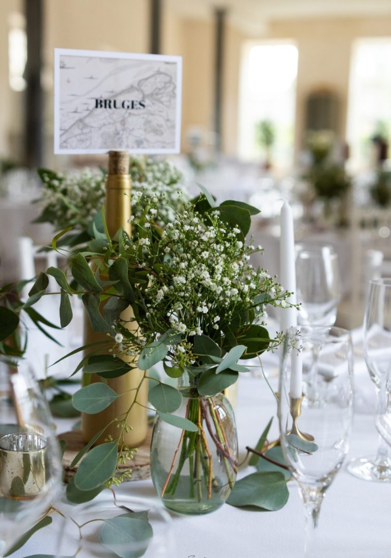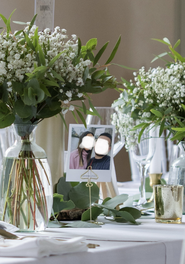 Petit plus : demandez à votre fleuriste de vous préparer des petites compositions florales pour la décorer