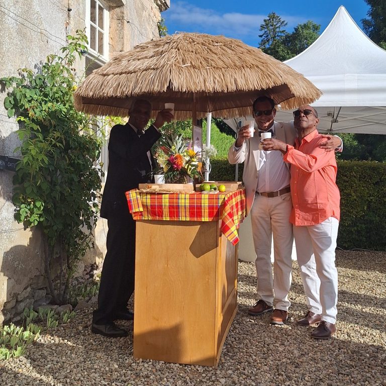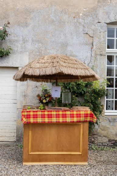 Bar couleur bois, fourni avec parasol (et nappe si besoin)
