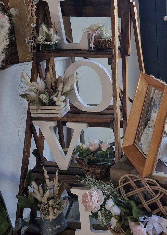 Peut être décorer avec fleurs, petites lettres LOVE (dispo dans rubriques "petits éléments de décoration"), photos, etc...