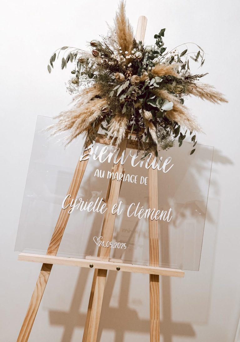 Peut être fourni avec panneau de bienvenue en plexiglas ou bois personnalisable